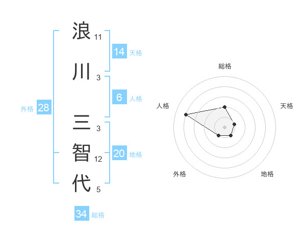 浪川 三智代さんの総格は34画の2点!