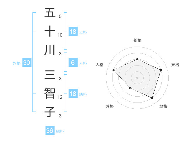 五十川 三智子さんの総格は36画の3点!