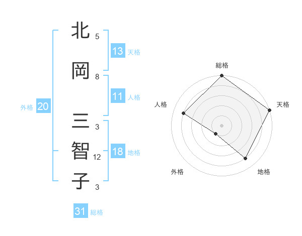 北岡 三智子さんを姓名の画数から五運を鑑定