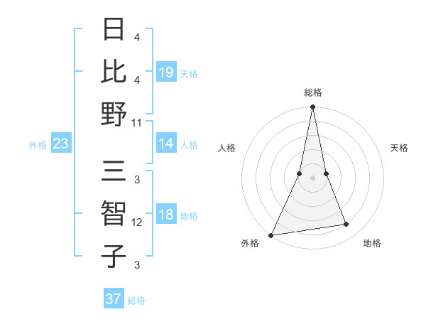 日比野 三智子さんを姓名の画数から五運を鑑定