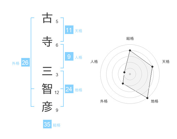 古寺 三智彦さんを姓名の画数から五運を鑑定