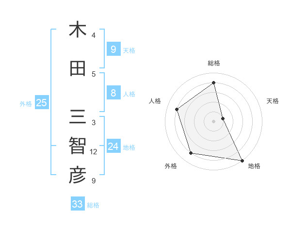 木田 三智彦さんを姓名の画数から五運を鑑定