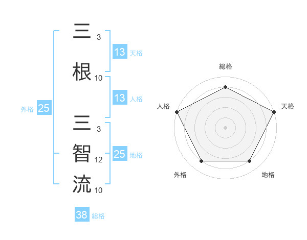 三根 三智流さんの総格は38画の4点!