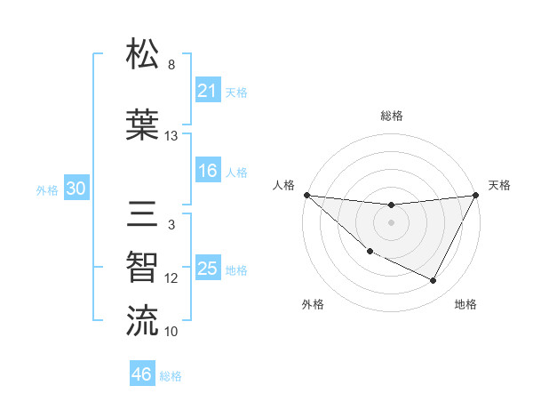 松葉 三智流さんの天格は21画の5点!