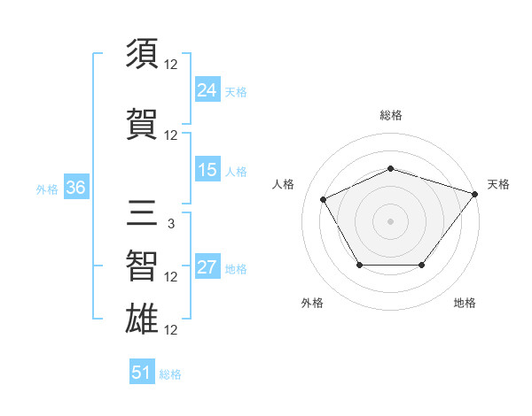 須賀 三智雄さんを姓名の画数から五運を鑑定