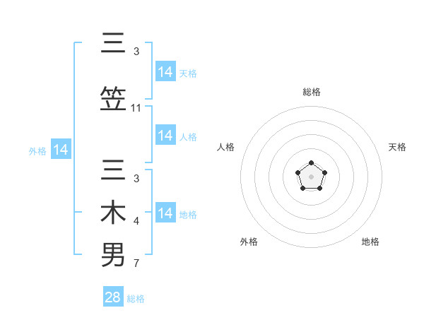 三笠 三木男さんを姓名の画数から五運を鑑定