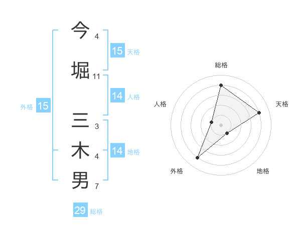 今堀 三木男さんを姓名の画数から五運を鑑定