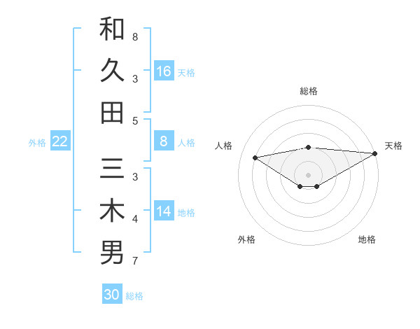和久田 三木男さんを姓名の画数から五運を鑑定