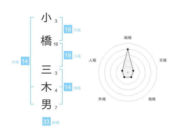 小橋 三木男さんを姓名の画数から五運を鑑定