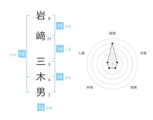 岩﨑 三木男さんを姓名の画数から五運を鑑定