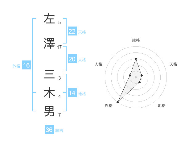 左澤 三木男さんを姓名の画数から五運を鑑定