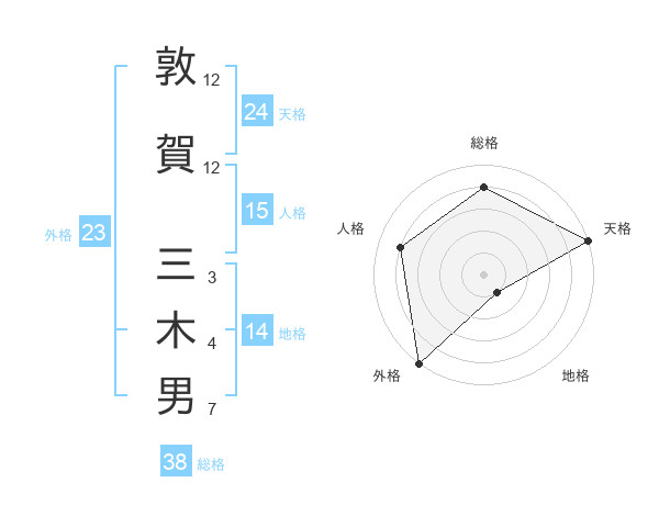 敦賀 三木男さんの総格は38画の4点!