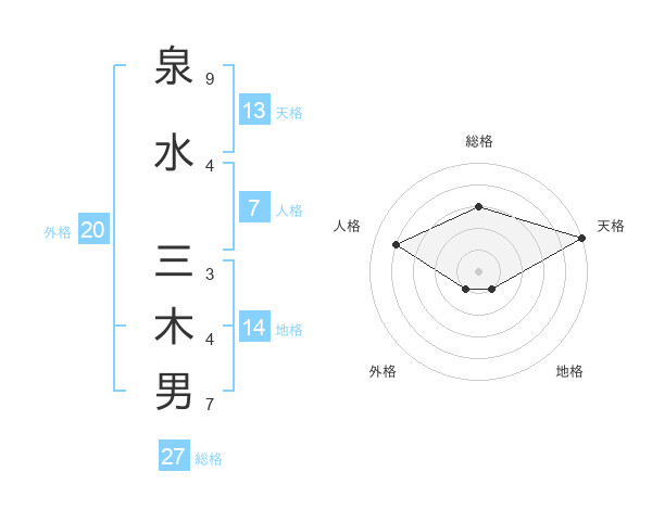 泉水 三木男さんの天格は13画の5点!