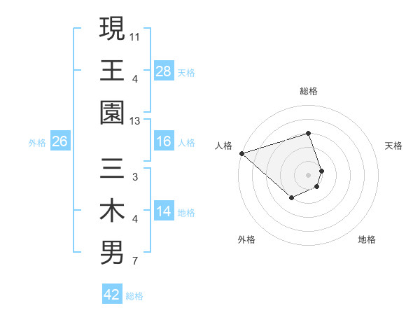現王園 三木男さんを姓名の画数から五運を鑑定