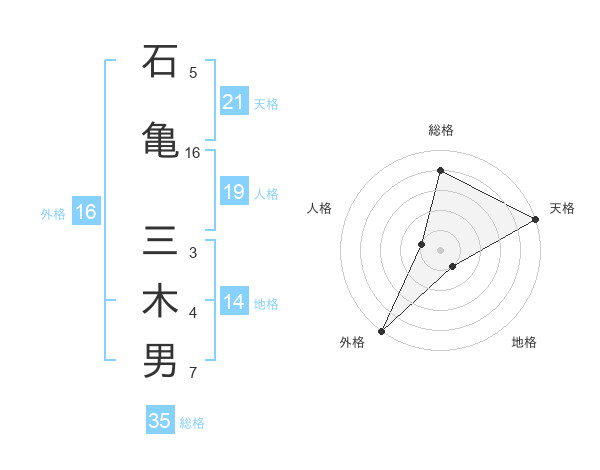 石亀 三木男さんを姓名の画数から五運を鑑定