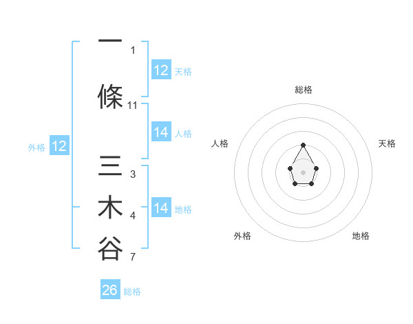 一條 三木谷さんの外格は12画の1点!
