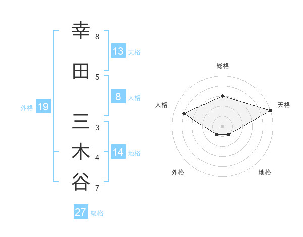 幸田 三木谷さんの総格は27画の3点!