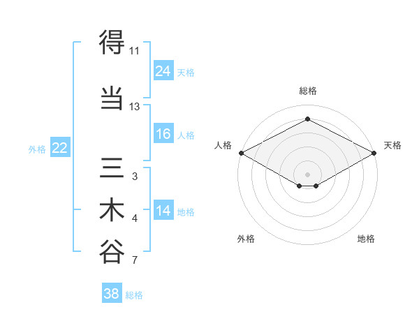 得当 三木谷さんの総格は38画の4点