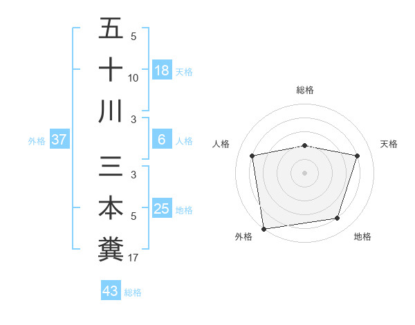 五十川 三本糞さんを姓名の画数から五運を鑑定