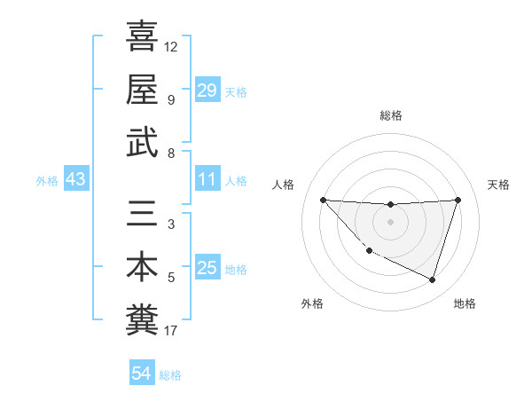 喜屋武 三本糞さんを姓名の画数から五運を鑑定
