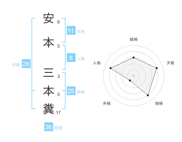 安本 三本糞さんを姓名の画数から五運を鑑定