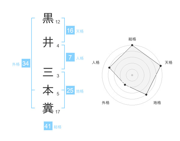 黒井 三本糞さんを姓名の画数から五運を鑑定
