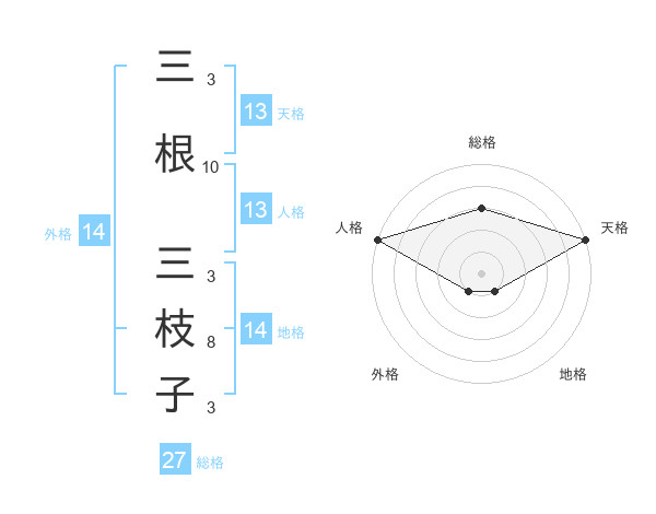 三根 三枝子さんを姓名の画数から五運を鑑定