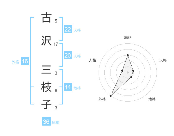 古沢 三枝子さんを姓名の画数から五運を鑑定