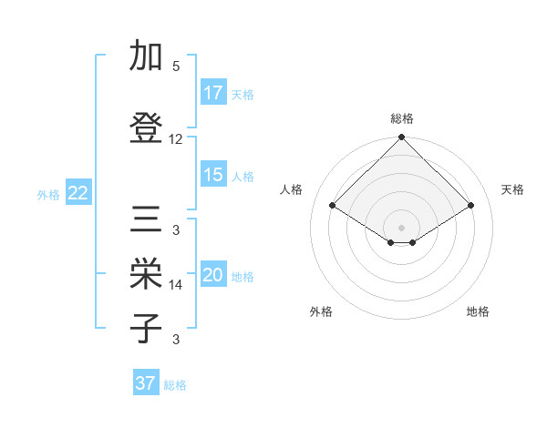 加登 三栄子さんを姓名の画数から五運を鑑定