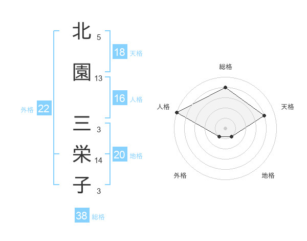 北園 三栄子さんの総格は38画の4点!