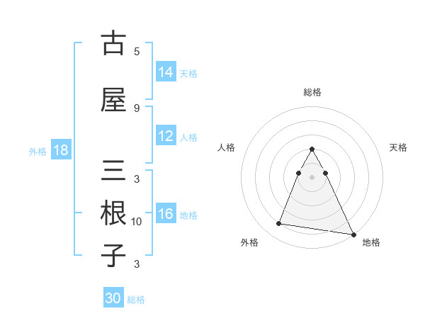 古屋 三根子さんを姓名の画数から五運を鑑定