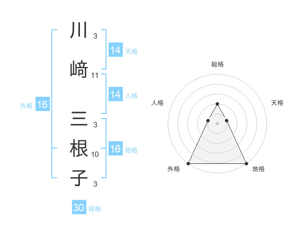川﨑 三根子さんを姓名の画数から五運を鑑定
