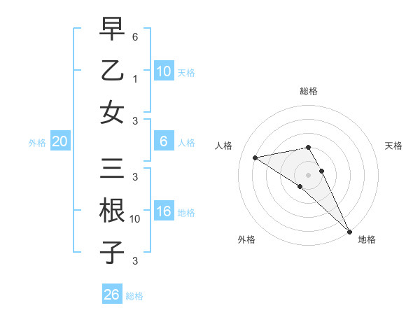 早乙女 三根子さんを姓名の画数から五運を鑑定