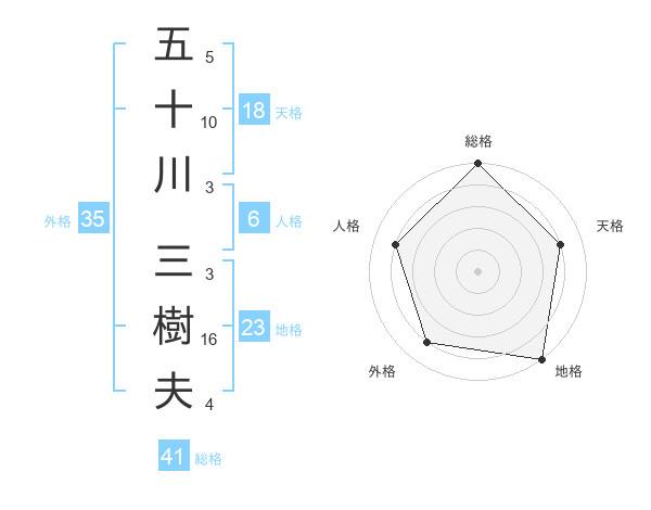 五十川 三樹夫さんを姓名の画数から五運を鑑定