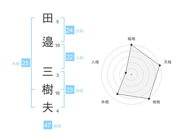 田邉 三樹夫さんの総格は47画の5点!