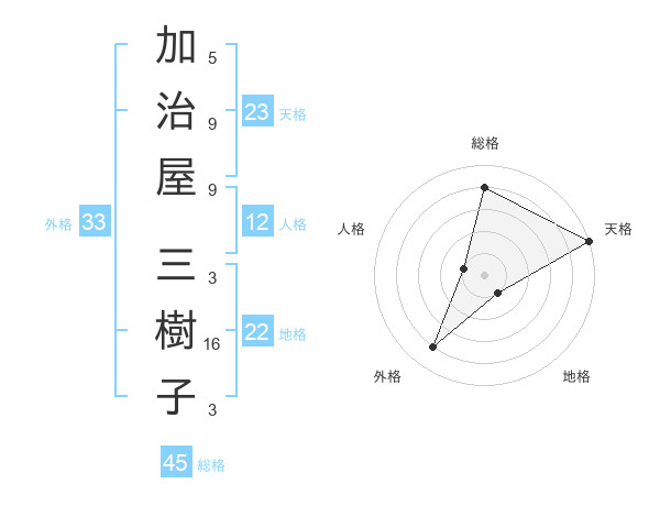 加治屋 三樹子さんを姓名の画数から五運を鑑定