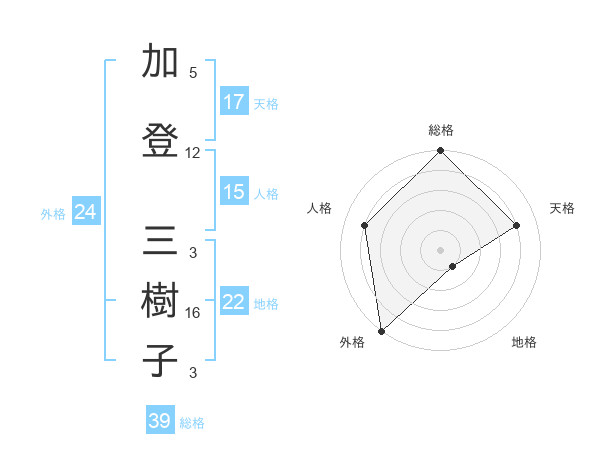 加登 三樹子さんの総格は39画の5点!