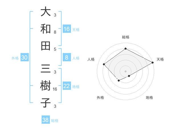 大和田 三樹子さんの総格は38画の4点