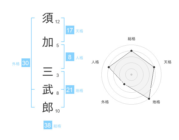 須加 三武郎さんの総格は38画の4点