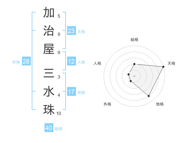 加治屋 三水珠さんの天格は23画の5点!