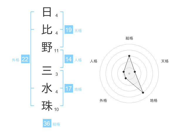 日比野 三水珠さんを姓名の画数から五運を鑑定