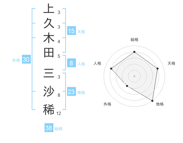 上久木田 三沙稀さんを姓名の画数から五運を鑑定