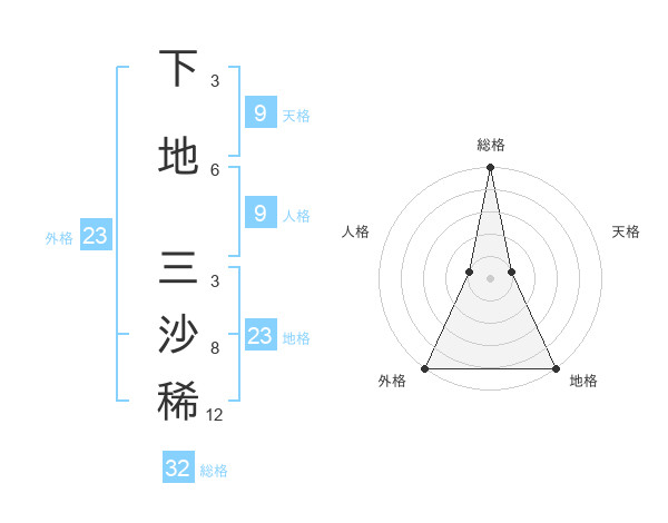 下地 三沙稀さんを姓名の画数から五運を鑑定