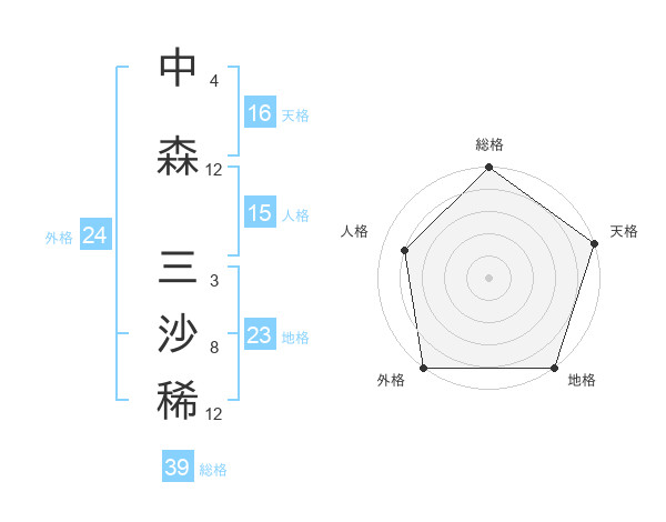 中森 三沙稀さんを姓名の画数から五運を鑑定