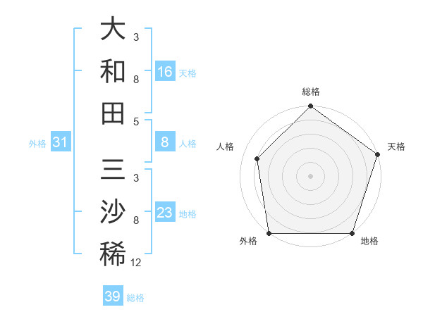 大和田 三沙稀さんの外格は31画の5点!