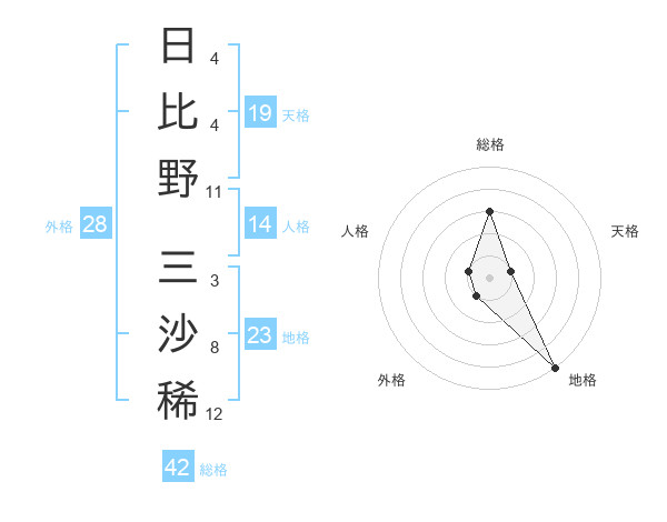 日比野 三沙稀さんを姓名の画数から五運を鑑定
