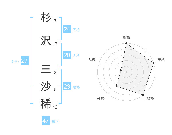杉沢 三沙稀さんの総格は47画の5点!