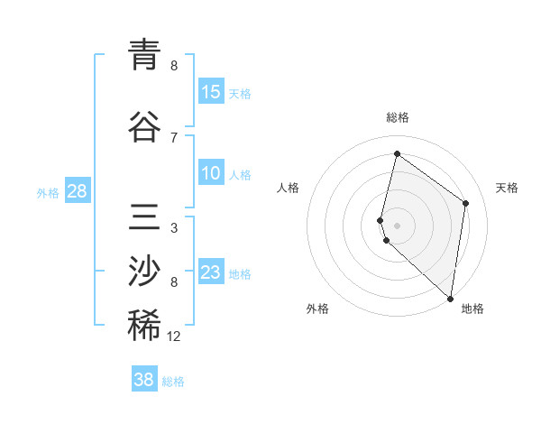 青谷 三沙稀さんの総格は38画の4点