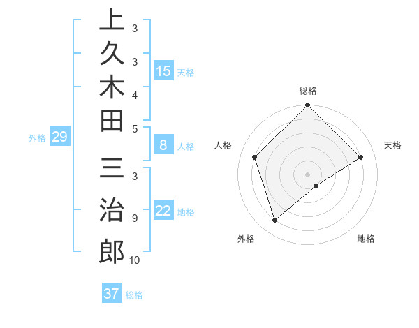 上久木田 三治郎さんを姓名の画数から五運を鑑定