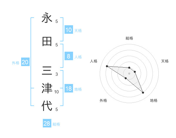永田 三津代さんの総格は28画の1点!